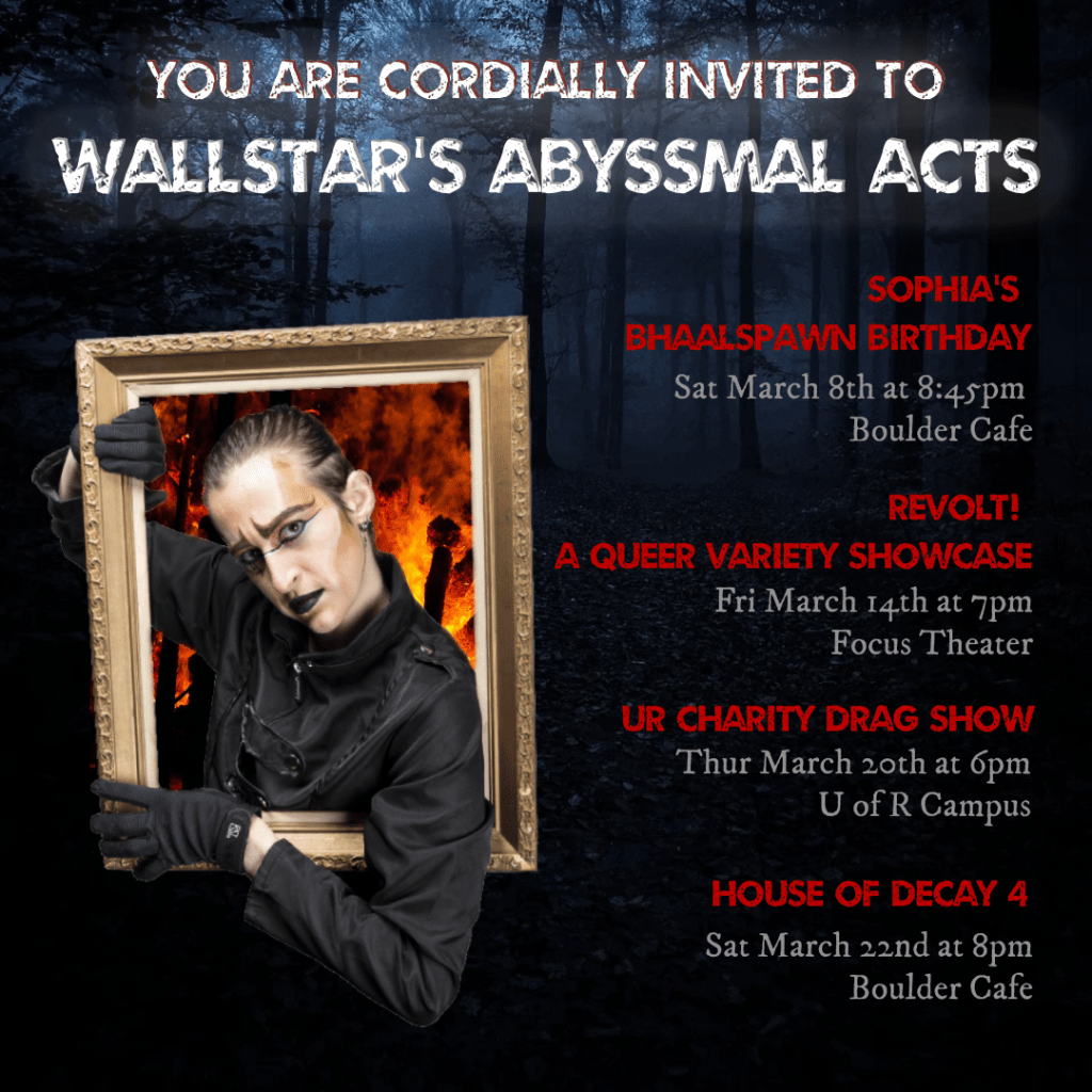 Graphic and Web Design, Logos and Branding, UI/UX, Small Scale Coding Apps, and Drag King Performances